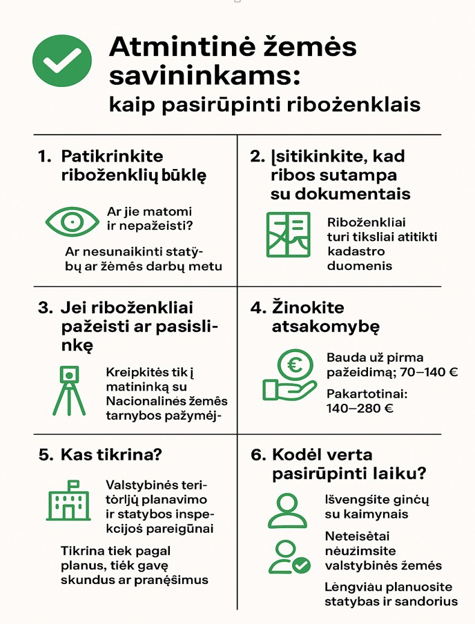 Dažna klaida – manyti, kad ribos yra „akivaizdžios“, todėl riboženkliai nepasitikrinami. Tačiau net ir sodų bendrijose dėl nežymių ribų pasislinkimų gali kilti ginčų ar grėsti baudos.